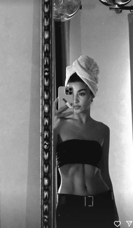 Sessizliğini bozan Hande Erçel, siyah-beyaz filtresiyle çekilmiş ayna pozunu Instagram’da paylaştı. Saçlarını havluya saran oyuncu, straplez üst ve jean kombiniyle poz verdi. Takipçileri ise özellikle Erçel’in fit görünümüne ve belirgin karın kaslarına yoğun ilgi gösterdi. Paylaşım kısa sürede binlerce beğeni aldı.